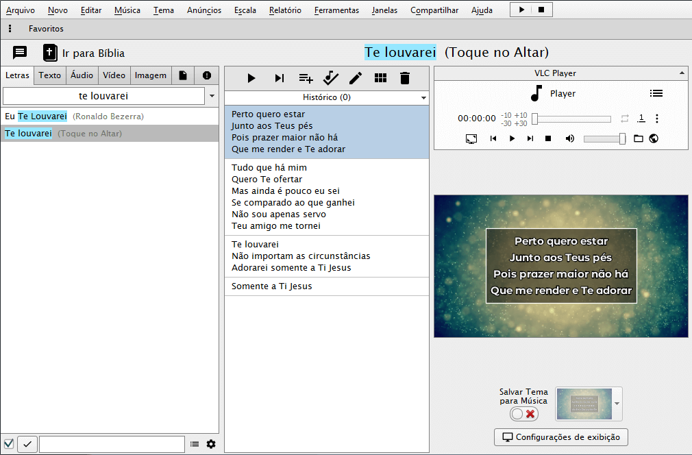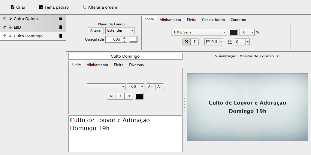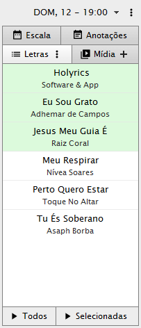 Start an automatic presentation of announcements or verses by making a selection of what you want to display.