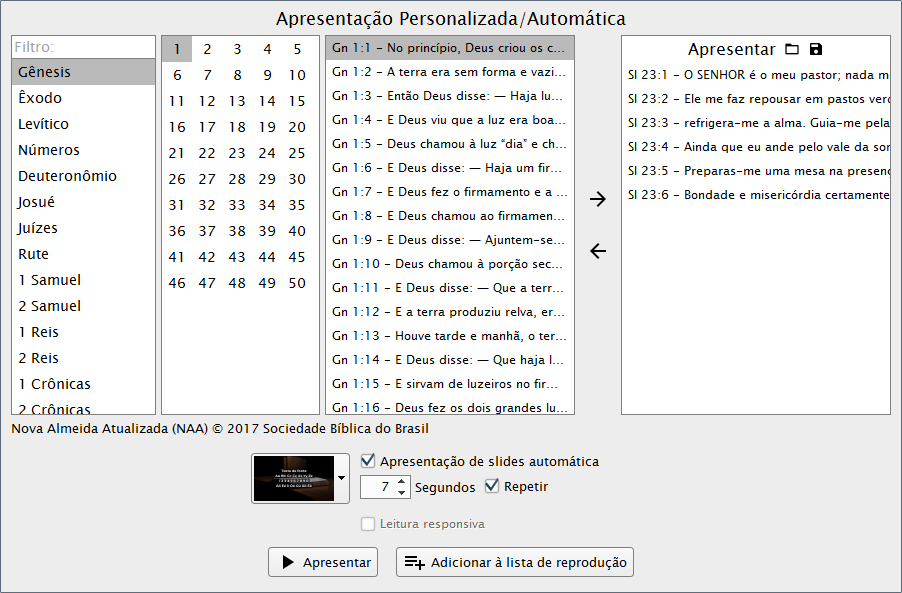 Custom/Automatic PresentationCreate a presentation with specific verses.