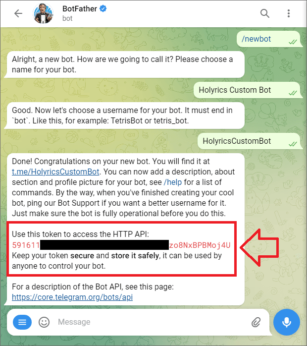 (example: 5916........NxBPBMoj4U) to configure the custom chatbot in Holyrics.