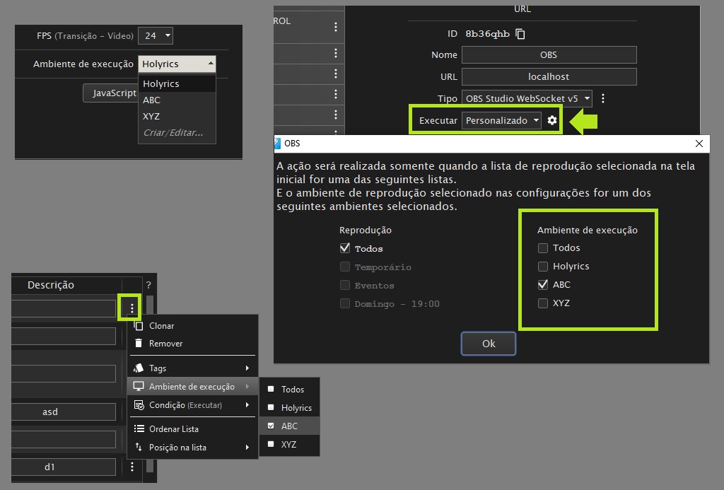 Select the corresponding runtime environment in Holyrics on each computer;